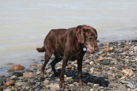 “Yes. Pongo, sit. Pongo, watch. Good boy. Now, GO FIND.” Pongo takes off knowing his job at hand. He lingers at a pile of games on a shelf. “Could that be the hide?” I ask myself but Pongo is off pulling me around the room. His sniffing increases as he sticks his nose between the refrigerator and the wall. He moves around the refrigerator definitely on the birch scent. Pongo sticks his nose under the hot-water base board heater and not so gracefully, pulls it off it’s hinge. He’s found the hide.