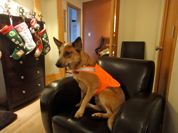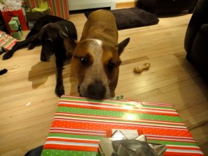 I have never seen a dog so excited when it comes time to open presents. I would even call it manic! He was all over the place: ripping open his presents, trying to sneak by Papa, the present gate-keeper, to grab at any present he could get his mouth on. It’s often more fun to watch him in his frenzy than to open the gifts ourselves.